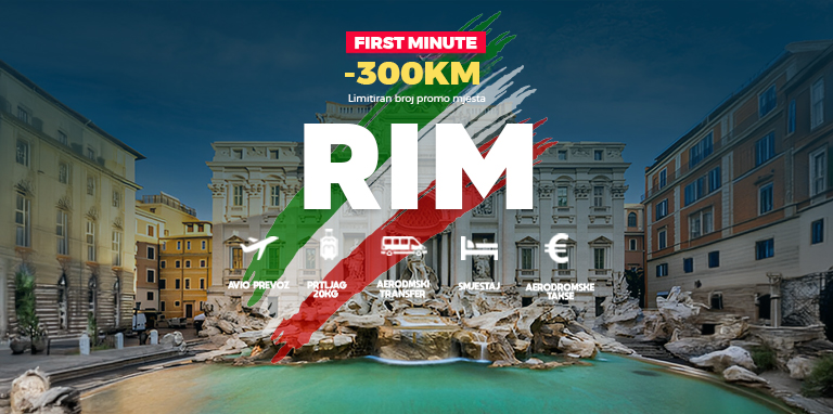 • Direktni avio transfer sa WizzAir avio kompanijom na relaciji Sarajevo-Rim sa uključenim aerodromskim taksama i ručnim prtljagom dimenzija 40x30x20cm