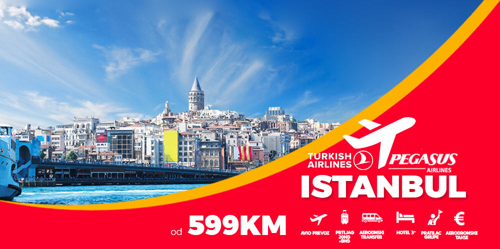 • Povratni let sa Pegasus / Turkish avio kompanijom na relaciji Istanbul – Sarajevo sa uključenim aerodromskim taksama, koferom od 20 kg i ručnim prtljagom