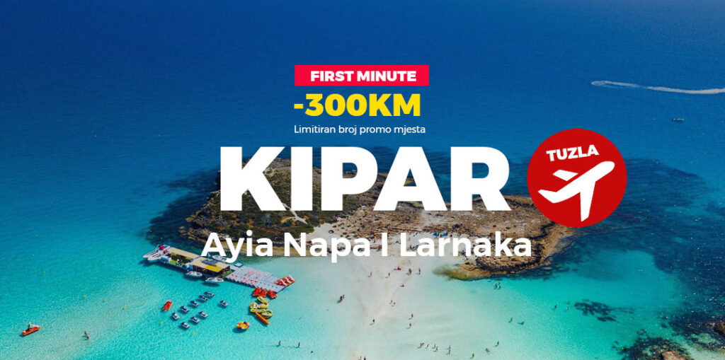 • Direktni avio transfer sa WizzAir avio kompanijom na relaciji Tuzla-Larnaka sa uključenim aerodromskim taksama i ručnim prtljagom dimenzija 40x30x20cm